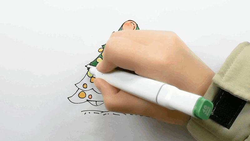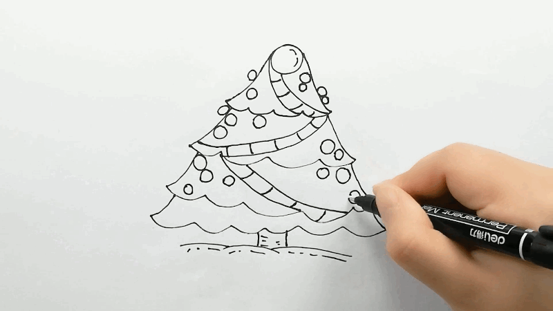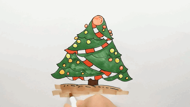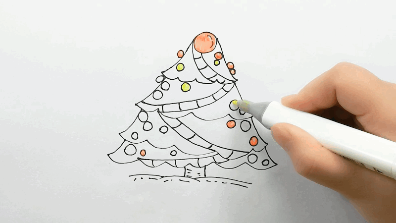 2、画出圣诞树并进行装饰,开始上色。